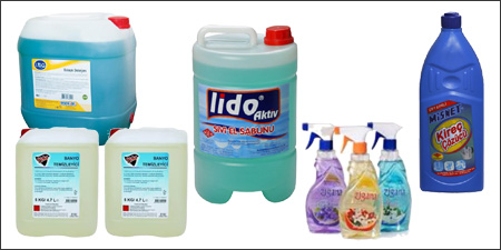 Banyo ve Wc Temizleme Ürünleri, Cam Temizleme Maddesi, Parlatma ve Bakım Maddesi, Epoksi Zemin Temizleme Maddesi, Genel Amaçlı Klorlu Temizleme Maddesi, Genel Temizlik Maddesi, Kir ve Cila Sökücü, Cila Maddesi, Sabun Bazlı Temizlik Maddesi, Ahşap Temizleme Maddesi, Arap Sabunu, Çamaşır Suyu, Kireç ve Derz Temizleme Maddesi, Kristalize Yer Cilası, Lavabo ve Gider Açma Maddesi, v.d.